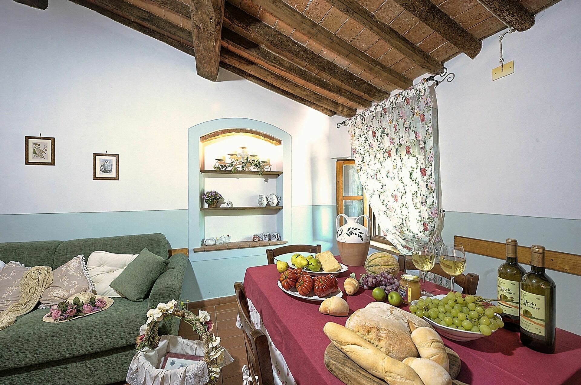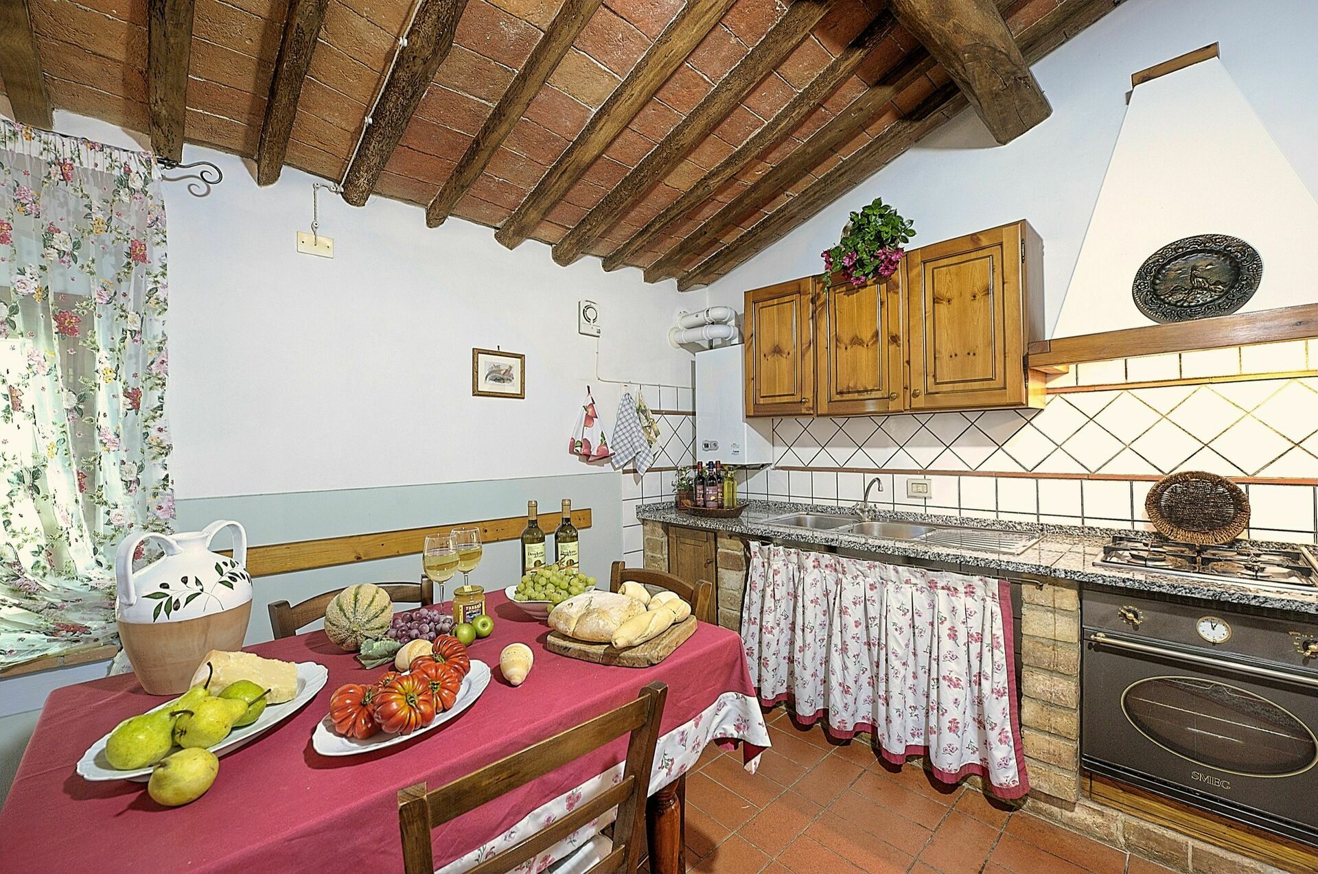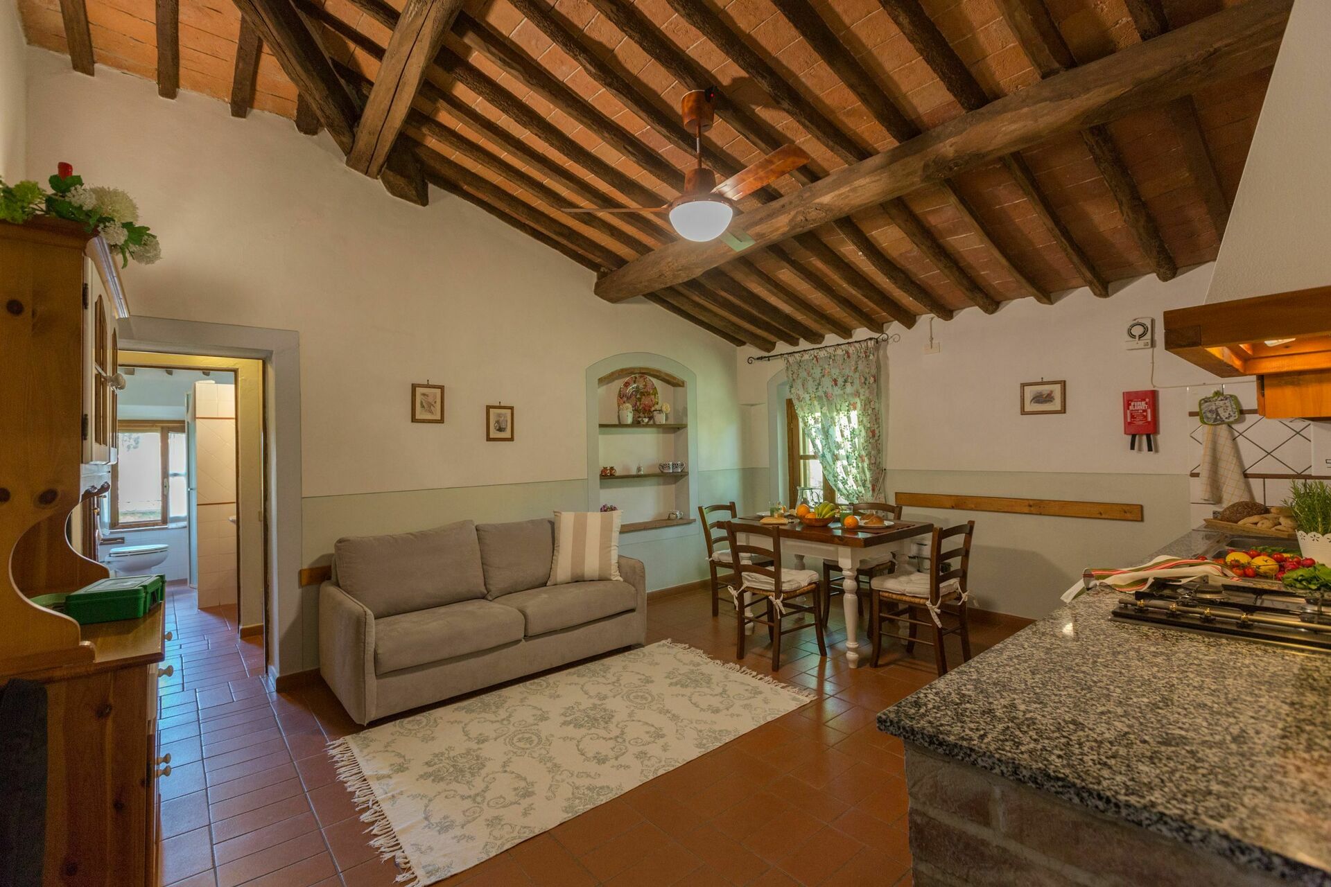 1er étage: séjour avec coin repas, canapé lit double et coin cuisine (four, freezer), chambre double, (transformable dans une chambre avec 2 lits à une place) salle de bain avec douche.