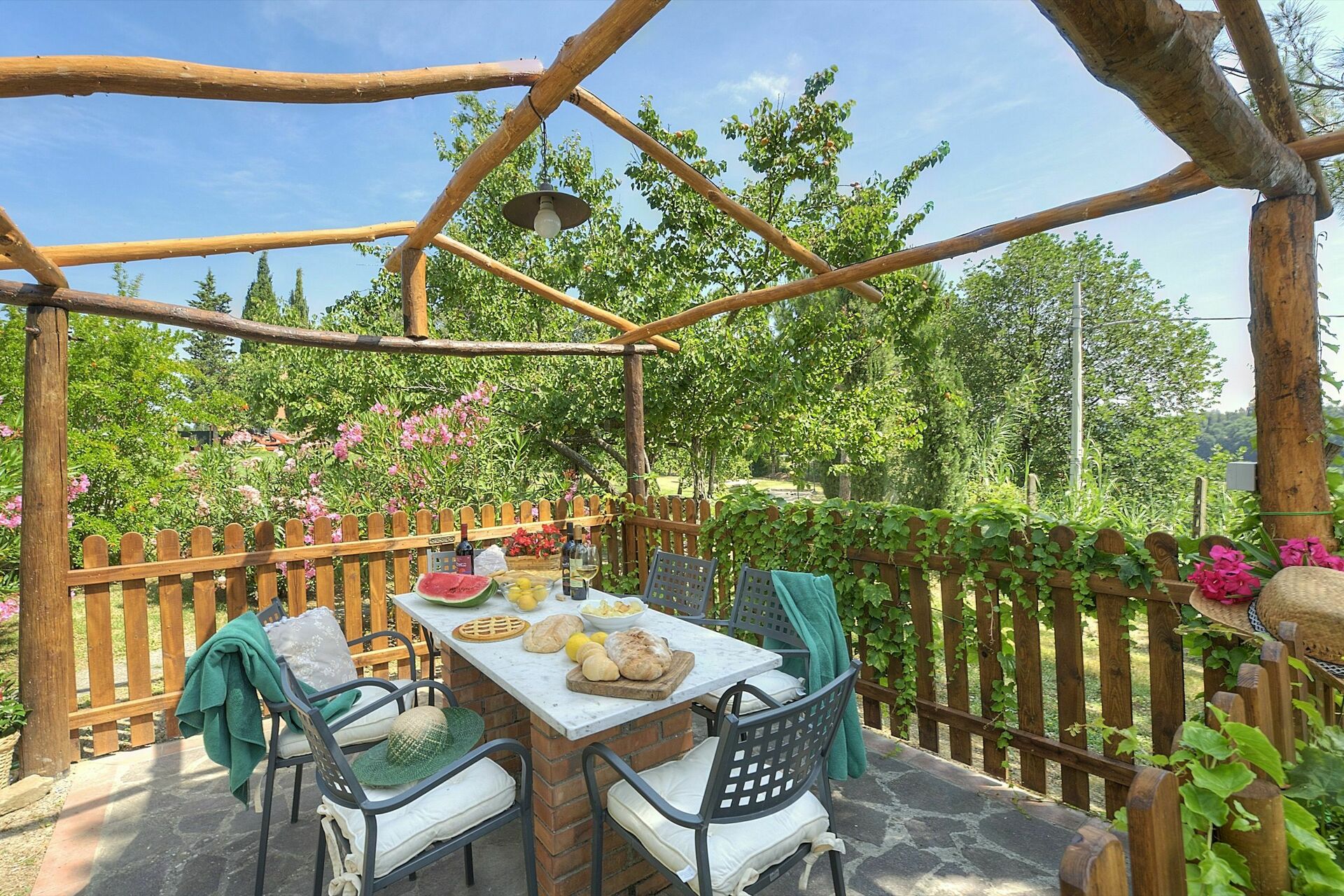Pavillon privé équipé avec table et chaises.