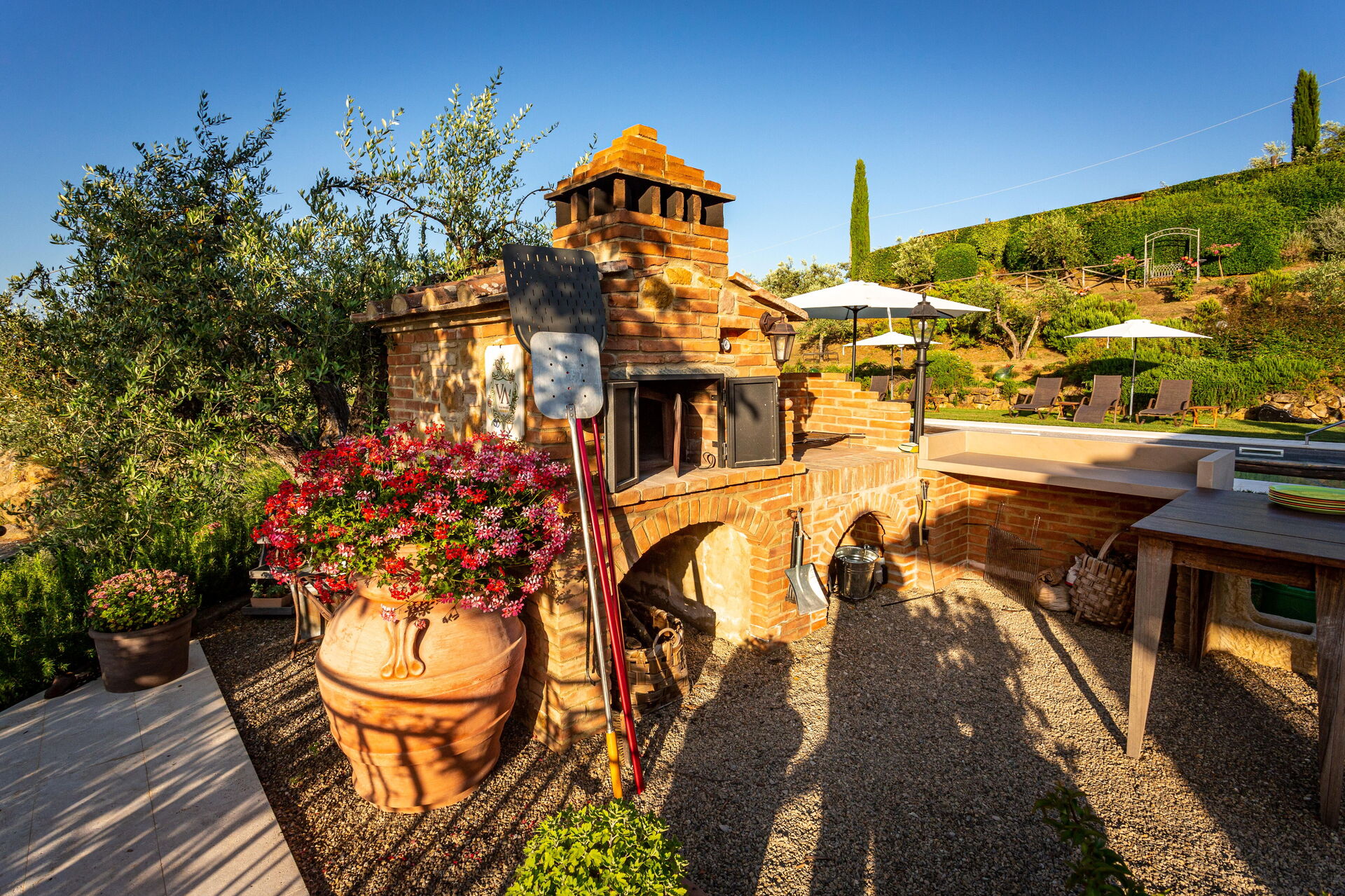 De eigenaren wonen af en toe in een gedeelte van de villa (met aparte ingang en tuin) en delen met de klanten het gebruik van het zwembad.