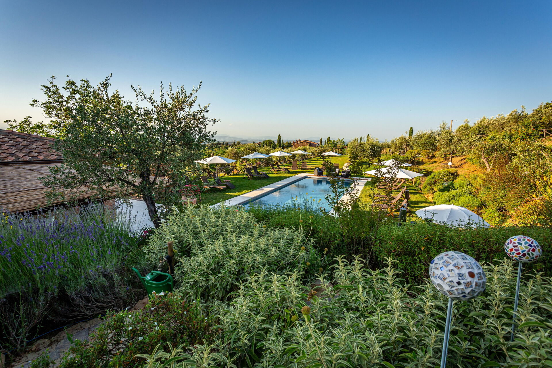 The house and garden are a showcase of creativity and good taste. Every day we heard and saw bee-eaters, nightingales, serins, warblers and many other birds. The mesmerizing villages and scenery of Tuscany did the rest. We had a wonderful time.